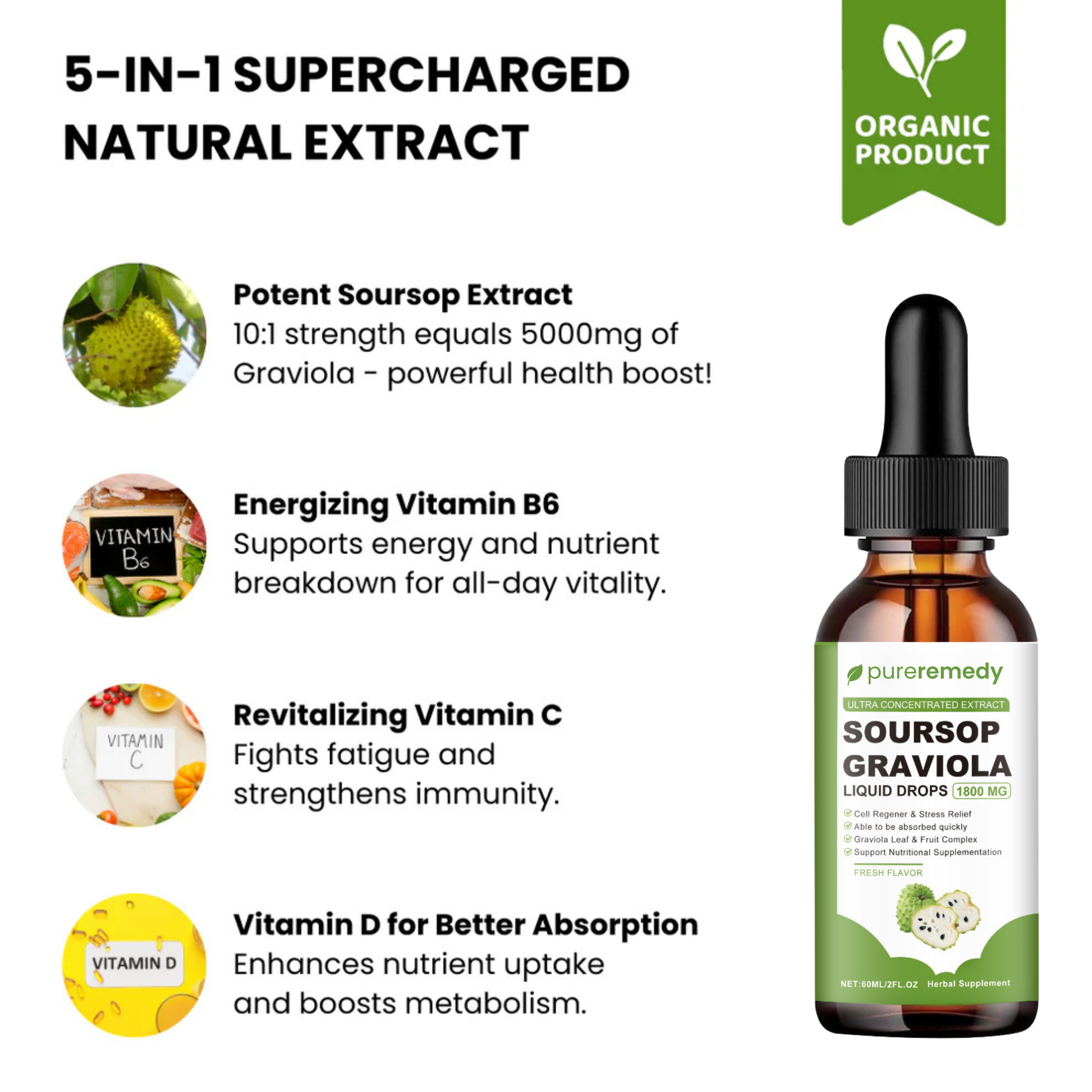 Experience the highest level of purity with Pureremedy Organic Soursops Extract, meticulously sourced from certified organic farms. We ensure that every drop delivers the full power of soursops, untouched by additives or preservatives, so you can trust you’re getting nature’s best in its most potent form.